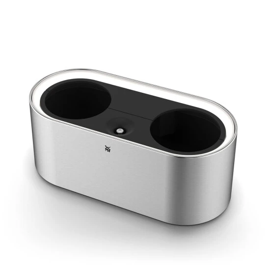 2 Dochte mit 2 Dochthaltern Individuell ein- und ausschaltbares Ambient Light in drei Helligkeitsstufen, mit Easy Touch Technologie steuerbar (per Fingertipp) Intelligentes Bewässerungssystem mittels Dochtbewässerung Wasserreservoir reicht für bis zu 4 Tage Komfortable Wasserbefüllung ohne Pflanzenentnahme Einfache Reinigung durch abnehmbaren Wassertank Geeignet für: Bis zu zwei Kräutertöpfe (Ø: 12cm) Vertriebsbindung: Lieferung nur an Fachhändler mit WMF-Vertriebsvertrag