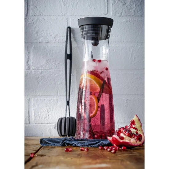 - Der pfiffige CloseUp-Verschluss öffnet und schließt sich beim Eingießen mithilfe eines Kippmechanismus automatisch. Eis und Fruchtstücke werden durch ein integriertes Sieb zurückgehalten. Er passt auf alle 3 Karaffengrößen