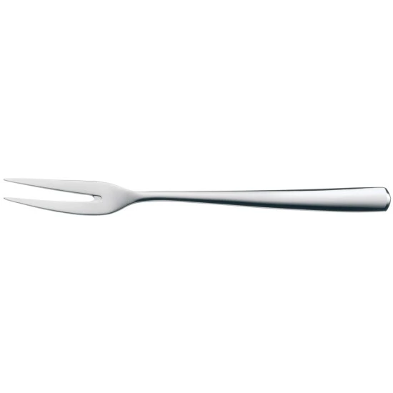 Die Spezialgabel mit den markanten zwei Zacken kommt vor allem beim Servieren von Aufschnitt zum Einsatz. Mit ihr lassen sich Wurstscheiben, kleine Käsestückchen oder Fischhappen ideal aufgreifen und auf den Tellern verteilen. Darüber hinaus ist sie am Buffet ein unerlässliches Servierbesteck: Ob Carpaccio, Rinderbraten, Parmaschinken oder Lachs das handliche Modell wird dezent am Tellerrand platziert und ermöglicht so eine schnelle und unkomplizierte Verwendung.