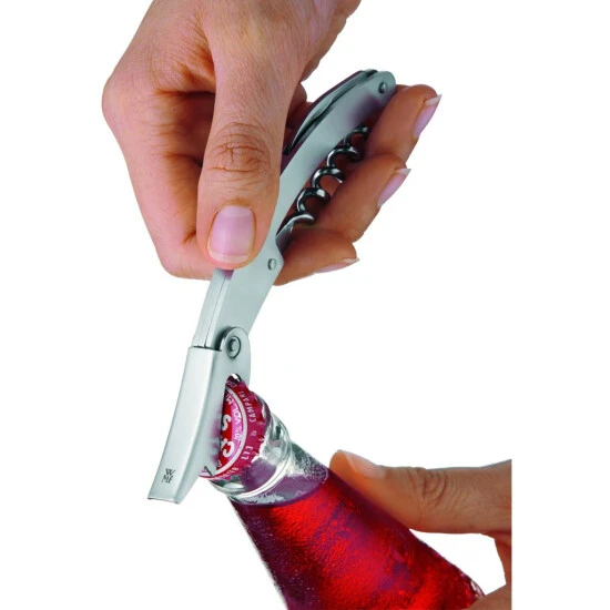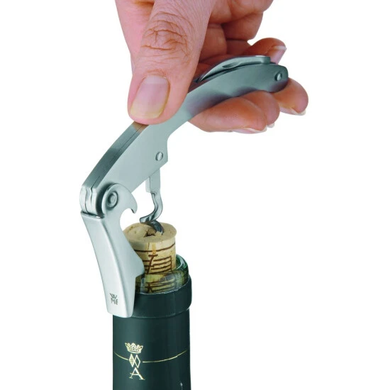 - Der WMF Korkenzieher öffnet Wein- und Proseccoflaschen. Bei ausgestelltem Flaschenrand werden die schwarzen Tasten nach außen gedrückt. Der Wendel ist präzisionsgedreht und beschichtet. Für alle Korkenarten geeignet