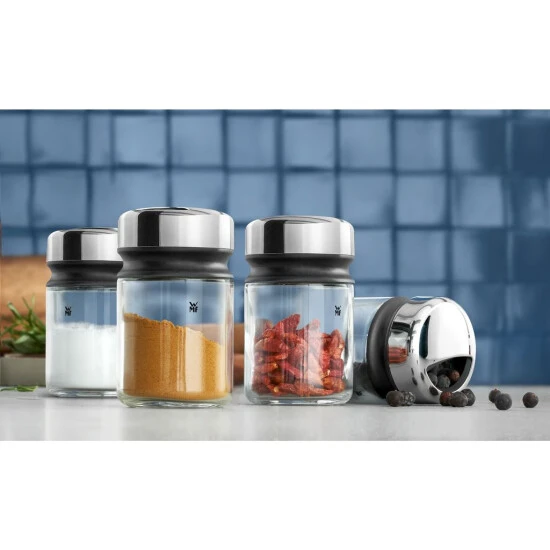 Die Kollektion Depot bietet formschöne Streuer und Gewürzmühlen mit original Keramikmahlwerk zum Aufbewahren und Mahlen von vielen verschiedenen Gewürzen. Die Aufbewahrungsdosen gibt es mit 3 verschiedenen Streueinsätzen: grob, fein und universal. Der Glasbehälter, der mit einem WMF Logo versehen ist, macht den Inhalt sichtbar, ist appetitlich und hygienisch.