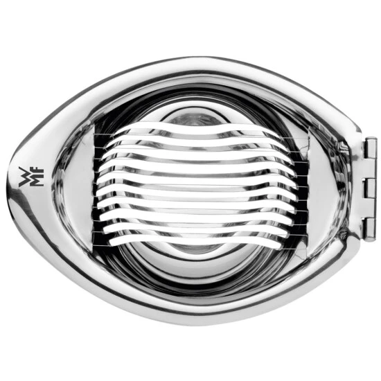 In Scheiben gelegt. Mit dem Eierschneider aus der WMF Serie Gourmet zerteilen Sie Ihr Frühstücksei präzise in feine Scheiben. Dazu einfach das Oberteil aufklappen, das hartgekochte Ei oder aber auch Champignons oder gekochte Kartoffeln in die Einbuchtung der unteren Schale legen und das Oberteil wieder zurückklappen. Der obere Teil des Eierschneiders ist mit fest gespannten, dünnen Drähten versehen, die Ei oder Gemüse in gleichmäßige Scheiben zerschneiden. Die Drähte und der restliche Eierschneider sind vollständig aus poliertem, rostfreiem Cromargan® Edelstahl 18/10 gefertigt und glänzen durch ihre robuste Verarbeitung. Denn der Edelstahl ist formstabil, beständig gegen Speisesäuren, geruchs- und geschmacksneutral, hygienisch und für die Reinigung in der Spülmaschine geeignet. WMF hat mit Gourmet eine Kollektion kreiert, die jede Küche stilvoll bereichert. Die praktischen Küchenhelfer verbinden hohe Funktionalität mit formvollendetem, zeitlosem Design.