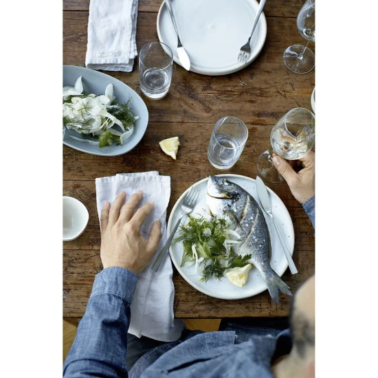Das Fischbesteck ist ausschließlich für Fischfilets oder ganze Fische zu verwenden. Das Fischmesser hat keine geschliffene Klinge und ist daher nur zum Zerteilen, oder Schieben des Fisches gedacht. Die Messerklinge ist symmetrisch geformt und setzt sich nach unten hin vom Messerheft ab. Die Fischgabel hat als Merkmal einen Einschnitt von den Zinken in das Gabelschiff, wird aber dennoch normal verwendet und ist fast identisch wie dieVorspeise-/ Dessertgabel. Zu jeder WMF Besteck-Kollektion gibt es das passende Fischbesteck.
