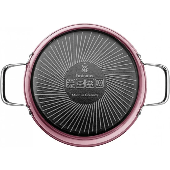 - Der Topf ist für allen Herdarten geeignet – auch Induktion. Die schneid- und abriebfeste Oberfläche sorgt für herausragende Kocheigenschaften – egal ob leckere Schmorgerichte oder ein krosses Steak