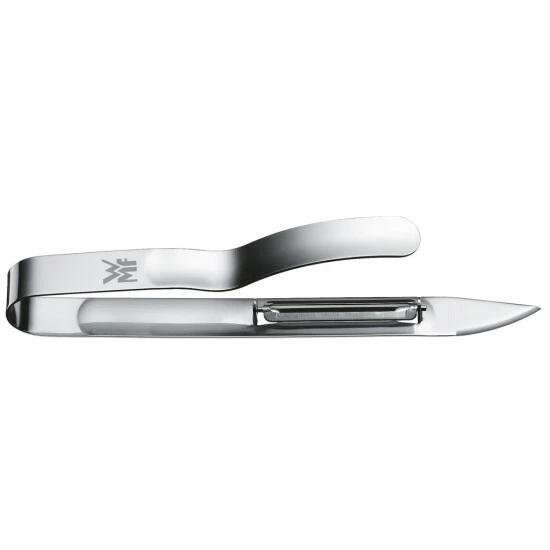 Der WMF Spargelschäler eignet sich optimal, um Spargelenden abzuschneiden. Mit der beweglichen Klinge wird der Spargel knapp und gleichmäßig geschält.