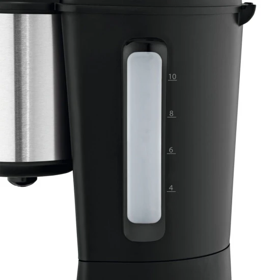 Hält 10 Tassen (je 125 ml) direkt aus dem Aromaglaskrug Externe Wasserstandsanzeige zum einfachen Ablesen der Wassermenge. Einfach zu bedienen: Start / Stopp-Taste mit Kontrollleuchte. Heizplatte mit automatischer Abschaltung für sichere Handhabung. Tropfstopp und Überlaufschutz für eine einfache Unterbrechung des Brauprozesses.