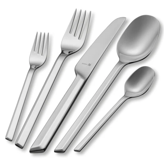 Die Schönheit der Gegensätze: Mit dem neuen Besteck WMF Kineo wird jedes Esserlebnis zum Hingucker. Inspiriert von moderner Architektur und geschliffenen Facetten, die an wertvollen Schmuck erinnern, treffen symmetrische und asymmetrische Linien aufeinander und sorgen für ein beeindruckendes Ergebnis. Mit einer raffinierten Ästhetik, die mutig und dennoch zeitlos ist, liegt dieses Besteck perfekt in der Hand. Dank der patentierten Oberflächenveredelung Cromargan protect® wird das Besteck zu einem dauerhaft schönen, langlebigen Schmuckstück. WMF Kineo ergänzt optimal die Designfamilie „Design Attitude“ und wird durch seine individuelle Form zu einem echten WMF Design Statement.