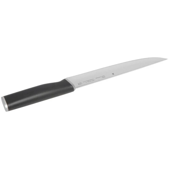 Insgesamt 9 unterschiedliche, scharfe Messer umfasst die Messerserie Kineo vom geläufigen Allrounder, dem Kochmesser, bis hin zum chinesischen Hackmesser. So unterschiedlich die einzelnen Klingenformen, so herausragend die Eigenschaften des verwendeten, rostfreien und speziell gehärteten Edelstahls. Dank der patentierten WMF Performance Cut Technologie bieten die Klingen eine überragend langanhaltende Schärfe, Tag für Tag, Schnitt für Schnitt. Das kinetische ergonomische Design mit hochwertigen Edelstahl-Griffkappen sorgt für einen komfortablen Griff und ein ausgewogenes Gefühl beim Schneiden, Hacken und Schnippeln.