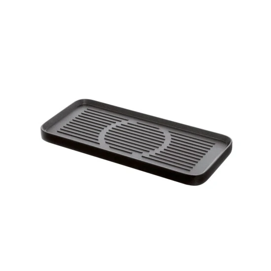 - Antihaftbeschichtete Wendegrillplatte mit einer gerippten Seite für eine Grilloptik oder auf der flachen Seite für Gemüse