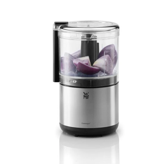 - Kompakter, platzsparender Universalzerkleinerer im WMF-typischen Cromargan-Design zum Zerkleinern von Kräutern, Nüssen, Schokolade, Käse, Zwiebeln usw.