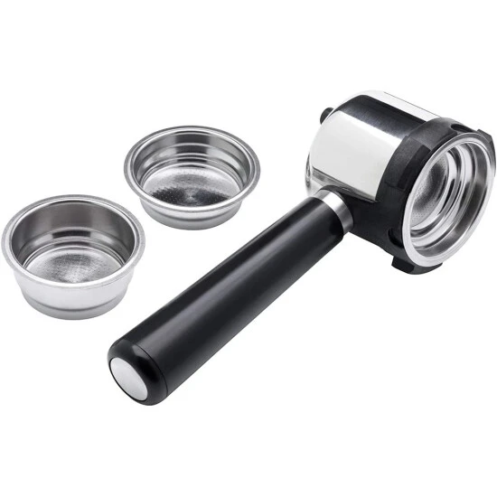 - Siebträgerhalter mit drei spülmaschinengeeigneten Einsätzen: für 1 oder 2 Tassen