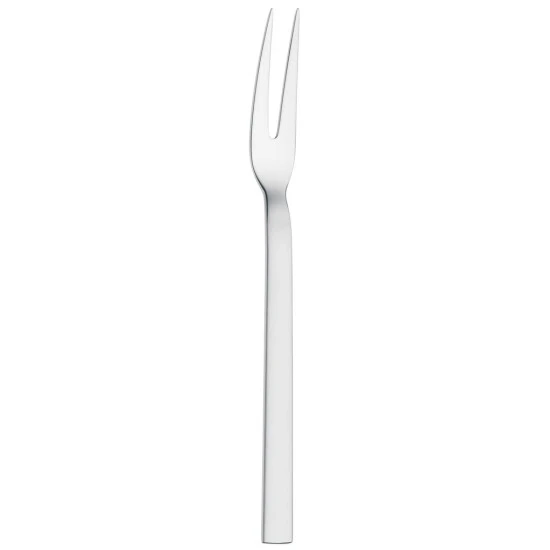 Die Spezialgabel mit den markanten zwei Zacken kommt vor allem beim Servieren von Aufschnitt zum Einsatz. Mit ihr lassen sich Wurstscheiben, kleine Käsestückchen oder Fischhappen ideal aufgreifen und auf den Tellern verteilen. Darüber hinaus ist sie am Buffet ein unerlässliches Servierbesteck: Ob Carpaccio, Rinderbraten, Parmaschinken oder Lachs – das handliche Modell wird dezent am Tellerrand platziert und ermöglicht so eine schnelle und unkomplizierte Verwendung.