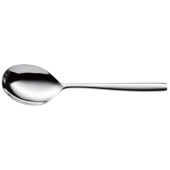 Der Servierlöffel eignet sich bestens für das Servieren von Gemüsegerichten, Aufläufen und klassischen Beilagen wie Reis und Kartoffeln. Er ist deutlich größer als das Menuebesteck, seine Laffe ist rund und großzügig, um Speisen leicht aufnehmen und servieren zu können. Zu jedem WMF Besteck gibt es den passenden Servierlöffel.