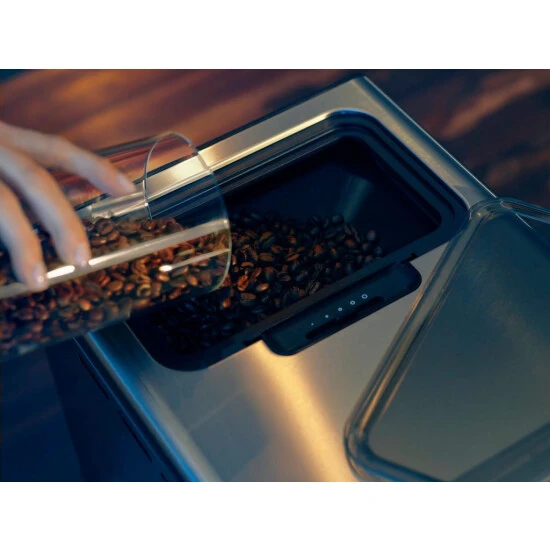 Reinigung durch selbstreinigende Metall-Brüheinheit und automatischem, selbstreinigenden Milchsystem. Kaffeereste fallen trocken in den Tresterbehälter (800ml). Sicherheit: Die Maschine mahlt nur bei richtig eingesetztem Bohnenbehälter-Deckel