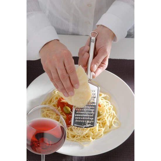 Mit den Käsereiben von WMF verfeinern Sie im Handumdrehen Pastagerichte und Aufläufe. Sie sind aus rostfreiem Cromargan® gefertigt und damit besonders stabil und langlebig. Die Käsereiben aus den Serien Profi Plus sind in modernem Design gestaltet und mit praktischer Aufhängeöse ausgestattet.