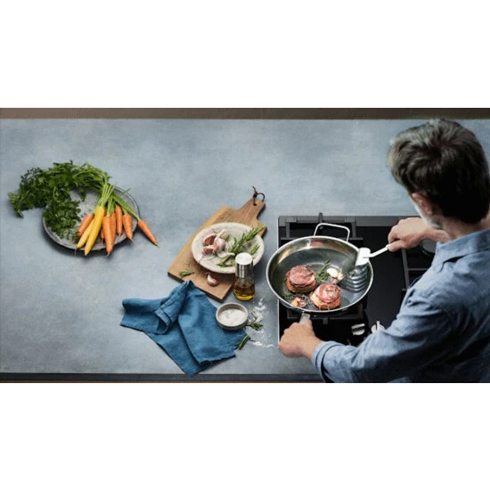 - Die Antihaftversiegelung wird durch eine erhabene Edelstahlstruktur geschützt. Die so sichtbaren Waben ermöglichen haftfreies Braten mit idealer Fettverteilung bei hohen Temperaturen