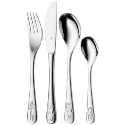 4-teiliges Kinderbesteck: Es ist nie zu früh, einen guten Geschmack zu entwickeln. Kinder entdecken ihre Welt spielerisch und schauen immer zu den Älteren auf. Die Kinderkollektion WMF berücksichtigt die emotionalen und motorischen Fähigkeiten jeder Altersgruppe, vom Baby bis zum Schulalter. Die Formen und Muster sind ein großer Spaß.