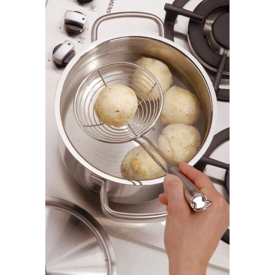 - Durch die flache Wölbung können Sie schwimmende Einlagen auch nahe vom Topfboden aufnehmen