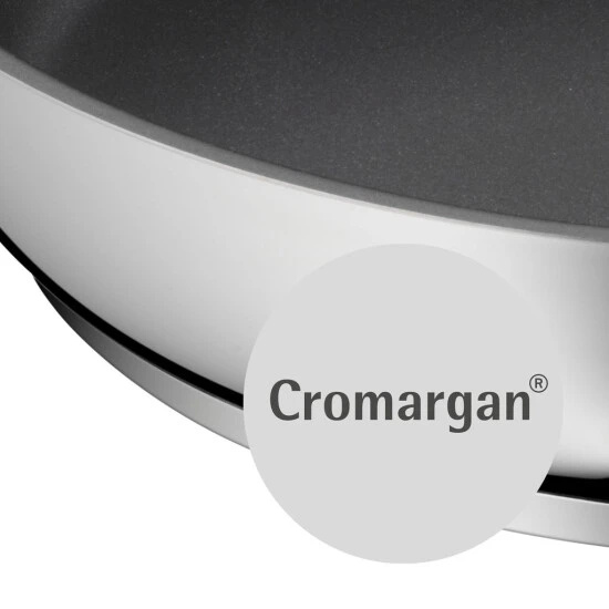 - Material: Cromargan Edelstahl 18/10 beschichtet. Keramisch verstärkte PTFE- Antihaftbeschichtung (ILAG Durit). Fettarmes, gesundheitsbewusstes Braten ohne Ankleben. Hitzebeständig bis 250°C, backofenfest bis 180°C