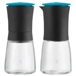 - Inhalt: 1x Salz-/ Pfeffermühle unbefüllt (13,5 x 2,5 x 6,5 cm, V 60g)), 1x Essig-/ Öl-/ Sojaspender (13,5 x 2,5 x 6,5 cm, V 120ml) – Artikelnummer: 0619479990