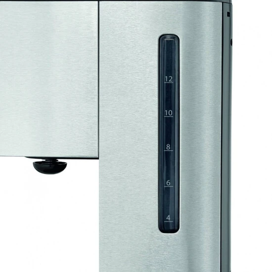 Genießen Sie jeden Morgen köstlichen, frisch gebrühten Kaffee mit der WMF Skyline Filterkaffeemaschine. Diese 12-Tassen-Kaffeemaschine mit Glaskanne besticht durch ihr elegantes Gehäuse aus mattem Cromargan®, das eine beeindruckende Ästhetik bietet. Zu den praktischen Funktionen gehören eine externe Wasserstandsanzeige zur einfachen Überwachung, eine bequeme Tropfstopp-Funktion und ein Überlaufschutz, der für absolute Sicherheit sorgt. Auch die Warmhalteplatte verfügt über eine automatische Abschaltung, die für absolute Sicherheit sorgt. Ein herausnehmbarer Filtereinsatz zum einfachen Befüllen und Reinigen rundet die Ausstattung ab.