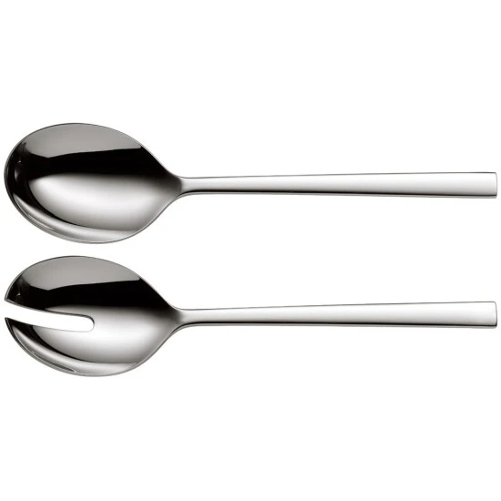 Durchmischen, aufgreifen, servieren: Keine Frage, zu einem frischen Salat gehört ein Salatbesteck. Es ist stets zweiteilig, wobei seine flachen, äußerst großzügig gestalteten Laffen die leichte Aufnahme des Salats ermöglichen – und zwar so, dass überschüssiges Dressing vor dem Servieren leicht abtropfen kann. Die langen Stiele des Bestecks sorgen für bequemes Hantieren und verhindern zugleich, dass es in die Salatschlüssel rutscht.