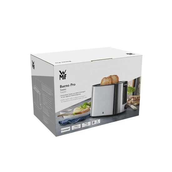 Kräftig dunkel getoastet, dezent gebräunt oder auch nur ganz leicht angeröstet: Vorlieben für das perfekte Frühstückstoast gibt es viele und mit gleich 6 variabel einstellbaren Bräunungsstufen trifft der Bueno Toaster Pro auch alle Geschmäcker. Damit auch jede Scheibe ganz gleichmäßig getoastet wird, ist eine präzise Brotzentrierung integriert – genauso übrigens wie ein Aufsatz zum Aufbacken von Brötchen oder Croissants. Clevere Zusatzfunktionen zum Aufwärmen, Nachtoasten oder Auftauen sowie zum Unterbrechen des Vorgangs sind kinderleicht über die beleuchteten Funktionstasten auszuwählen. Brotkrümel sammeln sich in der mit einem Handgriff entnehmbaren, praktischen Krümelschublade. Und die elegante, matte Oberfläche des Gehäuses sieht nicht nur großartig in jedem Ambiente aus, sie ist auch viel weniger anfällig für unschöne Fingerabdrücke.