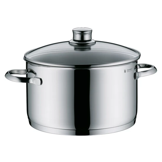 - Die genieteten Griffe des Edelstahl-Kochtopfs bieten einen sicheren Halt und werden während dem Kochvorgang nicht heiß. Der Glasdeckel ohne Dampföffnung ermöglicht es den Garvorgang zu beobachten