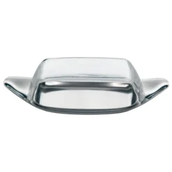 Diese schlichte Butterdose passt auf jeden schön gedeckten Tisch. Das Unterteil der Butterdose aus mattiertem Cromargan® Edelstahl Rostfrei 18/10 hat eine hervorragende Haptik. Dadurch ist sehr gute Greifen möglich. Die Größe ist für 250 g Butter geeignet.